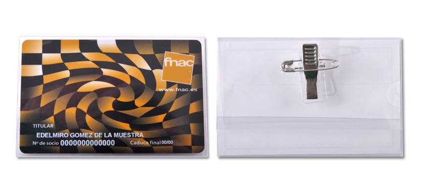 Funda en Acetato Transparente con pinza y imperdible dorsal.